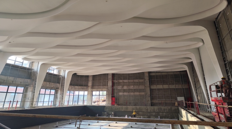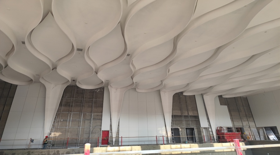 在施工前,要對商場公共區域的頂面進行精確測量,根據測量數據和設計方案進行 GRG 異形吊頂的定制加工。確保吊頂的尺寸、形狀和造型符合設計要求,避免出現誤差和偏差。同時,要注意吊頂的拼接和連接方式,保證吊頂的整體性和穩定性。
